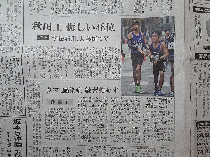 - 2年ぶり30回目の全国大会に出場する秋田工業高校陸上競技部駅伝チーム、千秋公園に熊が出たり路上練習が厳しい中、学校内中心に練習を続けています。